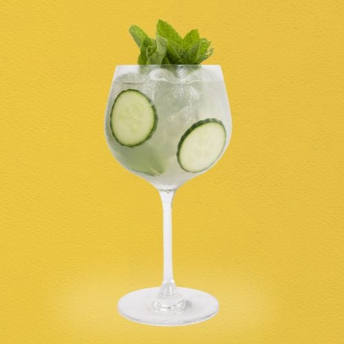 Garnish: 3 Cucumber wheels and 1 mint sprig